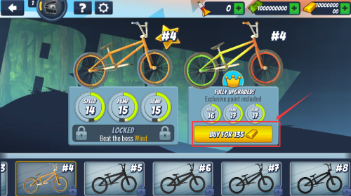 1、點(diǎn)擊紅框箭頭指向的黃色購買按鈕,花費(fèi)135金幣購買4自行車。