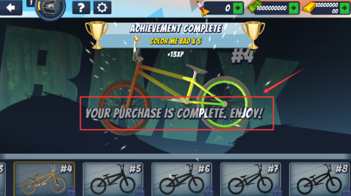 2、查看紅框內(nèi)購買完成提示,解鎖彩虹涂裝自行車。