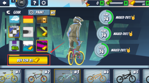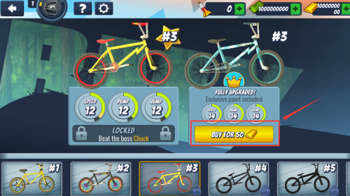 1、點(diǎn)擊紅框標(biāo)注的黃色購買按鈕,花費(fèi)50金幣獲得3號自行車。