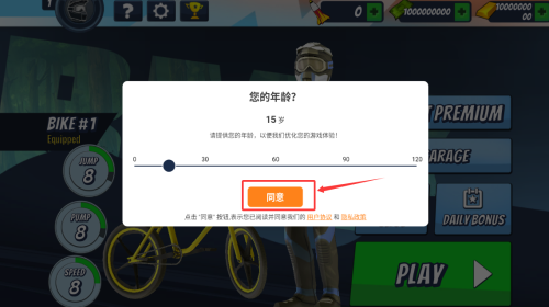 2、滑動年齡選擇十五歲,點擊紅框同意按鈕。