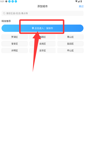 1、在添加頁(yè)面點(diǎn)擊目標(biāo)城市,進(jìn)入該地天氣詳情頁(yè)。